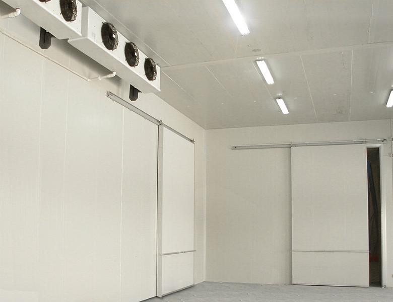 搭建完冷庫后配備壓縮機組、冷風機、冷卻塔、膨脹閥、閥門等設備或部件。進行內外機吊裝、冷卻塔安裝、管道連接、動力和控制系統安裝、調試。(冷庫建造完成步驟)